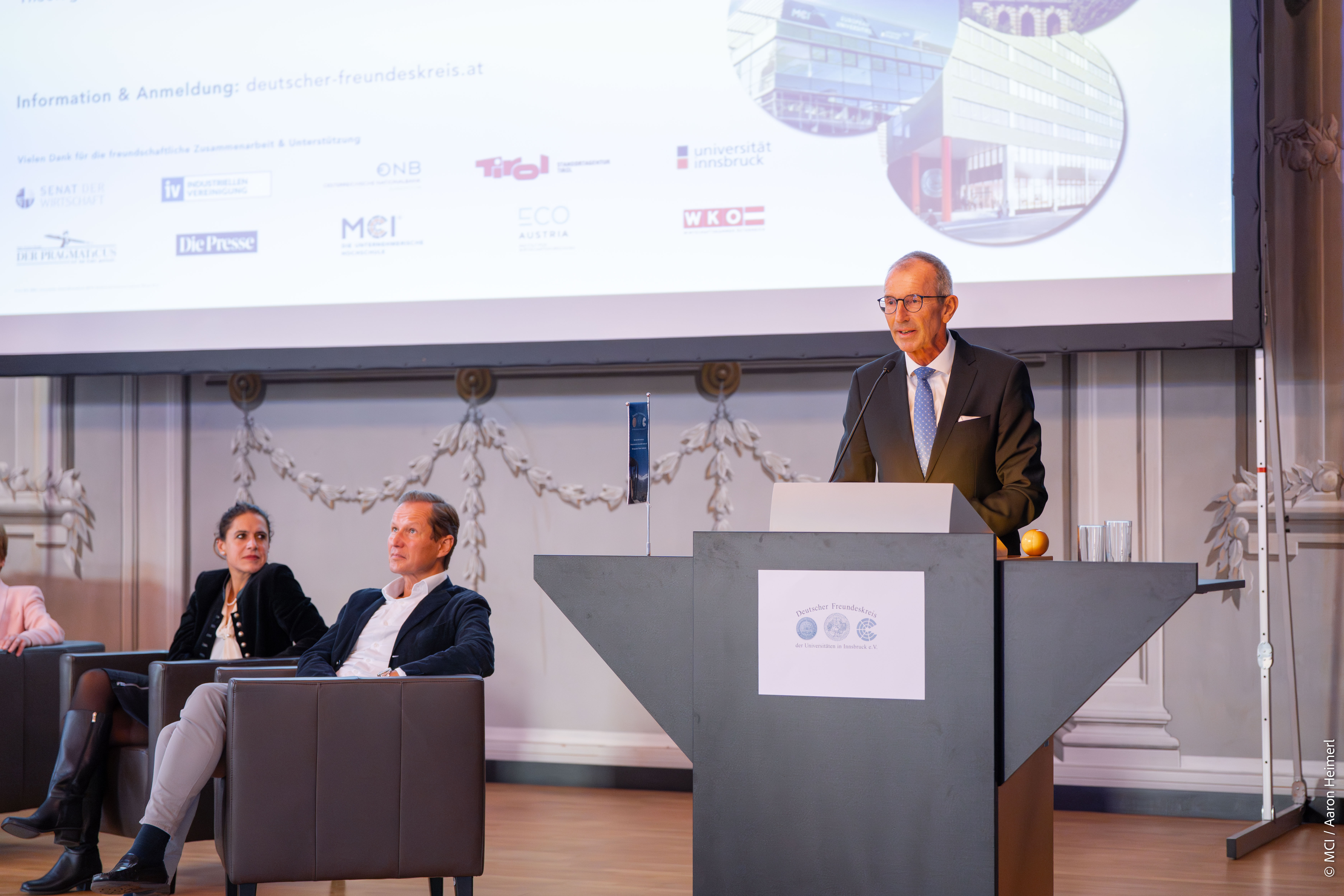 DFK-Vorsitzender Markus Walzl sieht den Auftrag des Deutschen Freundeskreises erfüllt, die Universität Innsbruck, die Medizinische Universität Innsbruck und MCI | Die Unternehmerische Hochschule® mit renommierten Persönlichkeiten, Unternehmen und Institutionen aus Wissenschaft, Wirtschaft und Gesellschaft zusammenzubringen, nachbarschaftlichen Dialog und Begegnung sowie wissenschaftliche Exzellenz und herausragende Studienleistungen zu fördern.
